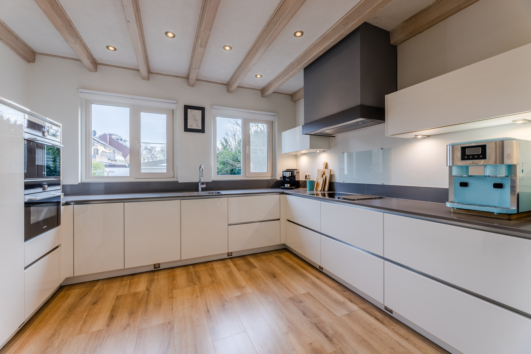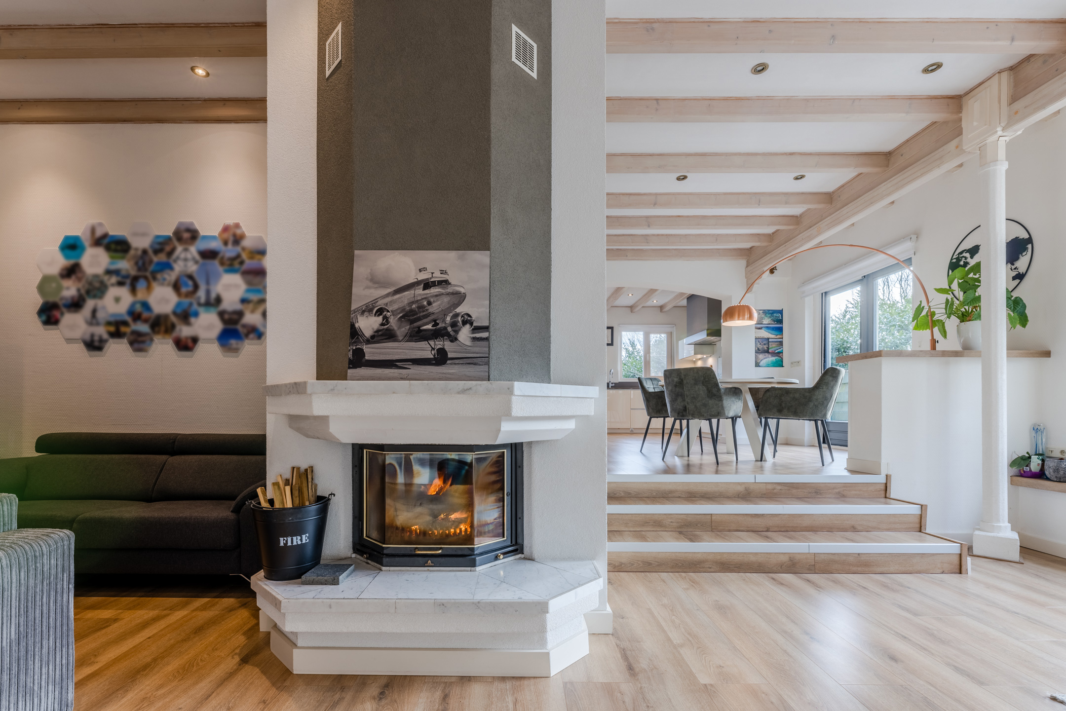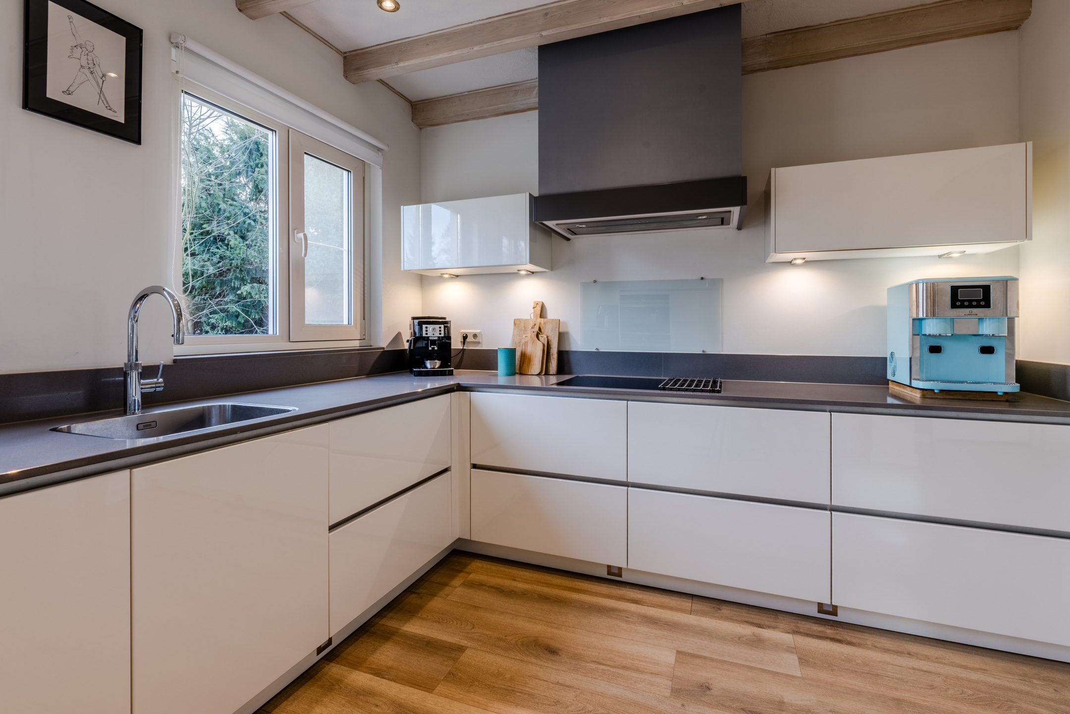 De hoofdwoning kenmerkt zich door een royale en sfeervolle indeling. De ruime woonkamer biedt een gezellige leefruimte met veel lichtinval. De moderne keuken is uitgevoerd met hoogwaardige Siematic inbouwapparatuur, waaronder een stoomoven, oven, grote koelkast en inductiekookplaat – een droom voor de kookliefhebber.
