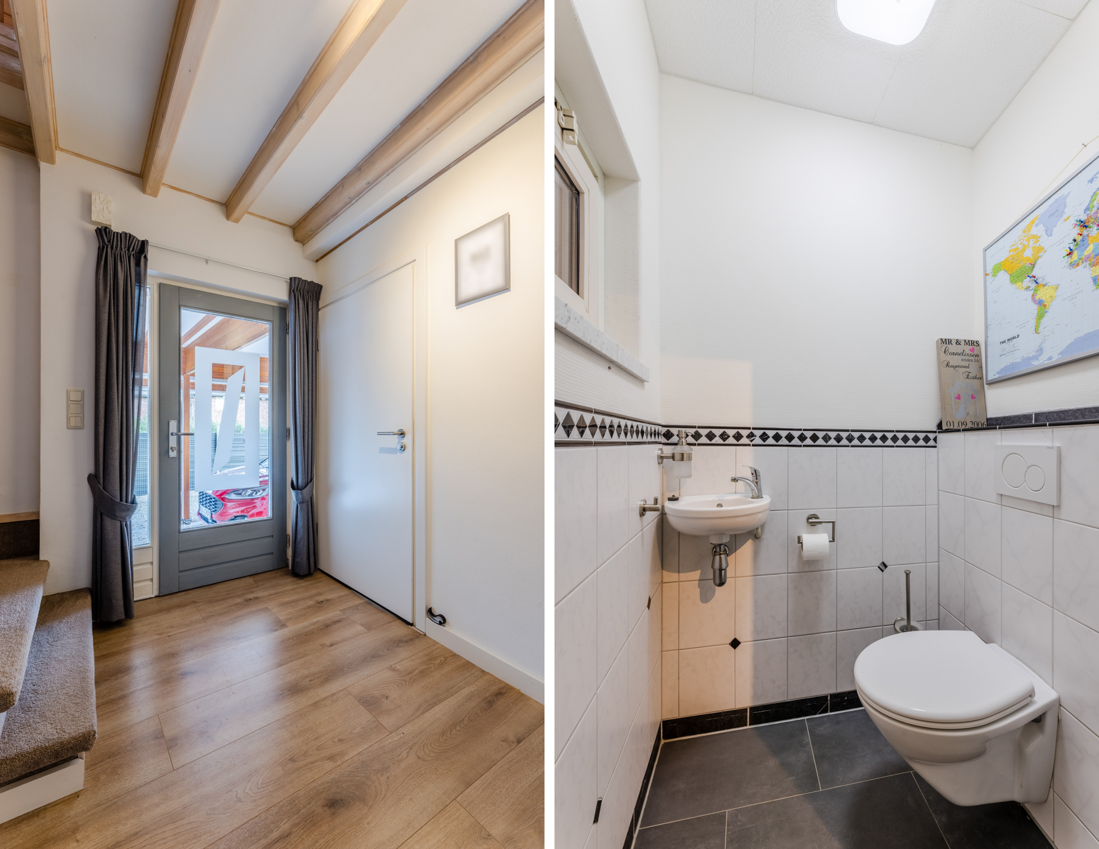 De bungalow telt twee slaapkamers, met een ensuite badkamer voorzien van douche en wastafel. Daarnaast is er een inpandige ruimte voor wasmachine en installaties. De gehele bungalow is uitgerust met vloerverwarming, welke naast verwarmen ook kan koelen, wat zorgt voor optimaal comfort in alle seizoenen.