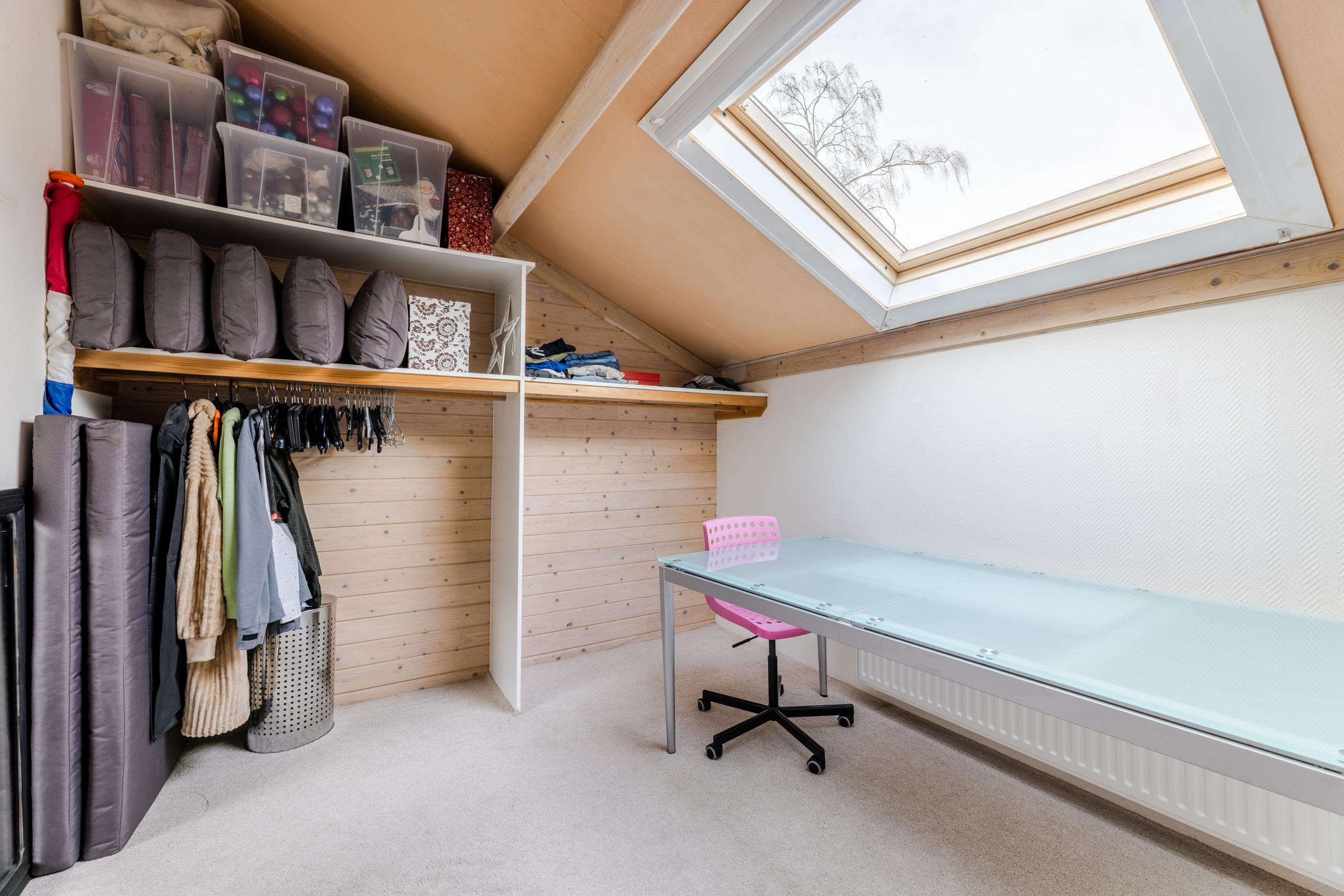 Op de begane grond bevindt zich tevens een kantoor of slaapkamer, ideaal voor werken aan huis of gelijkvloers wonen.