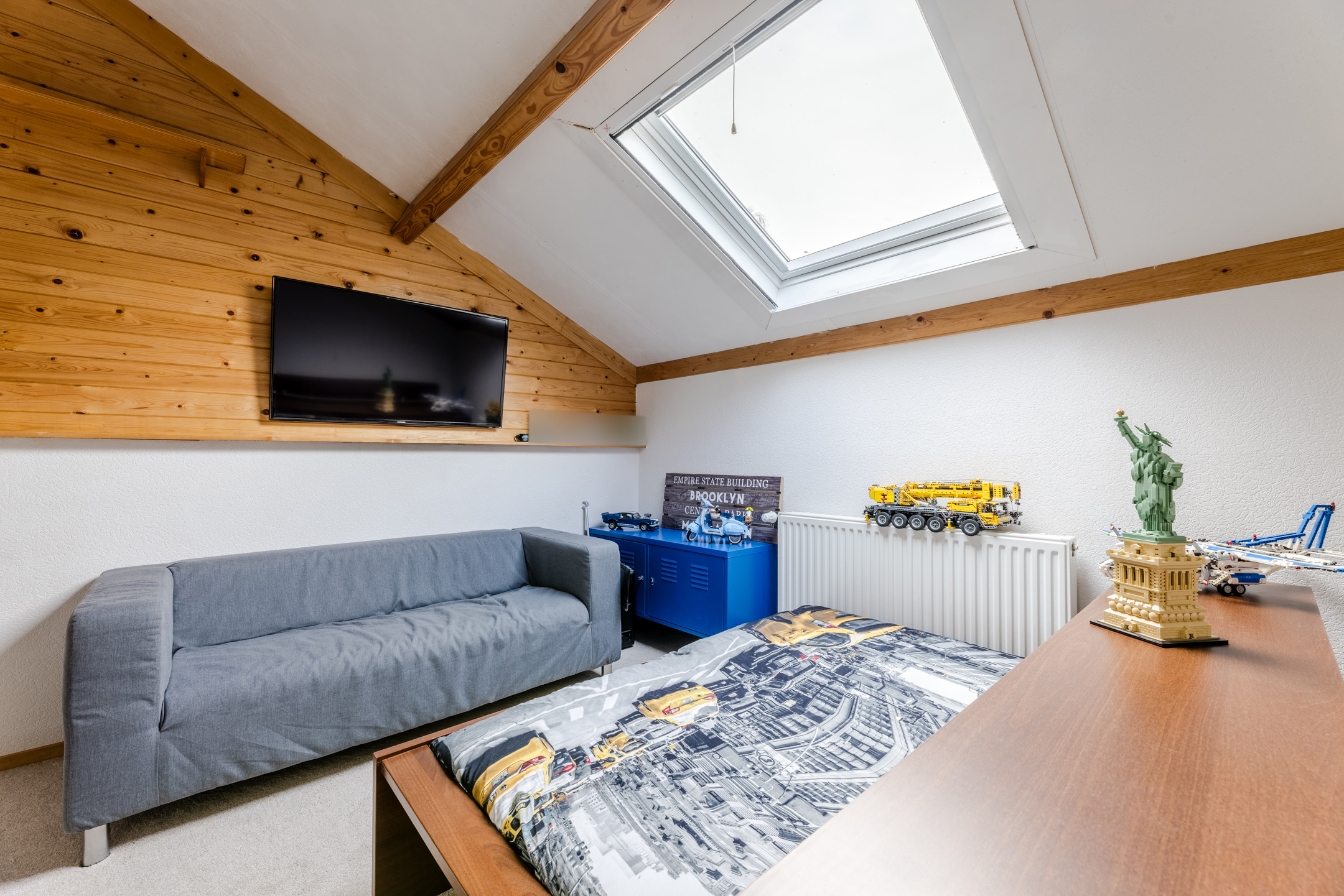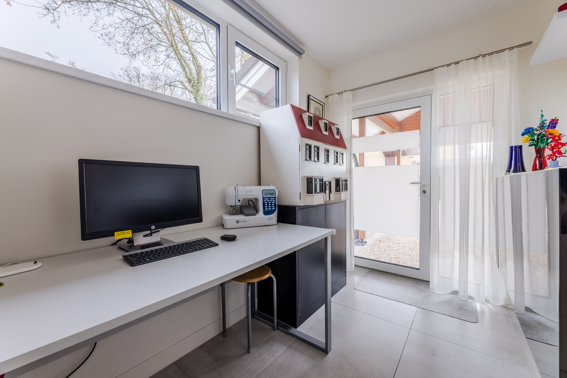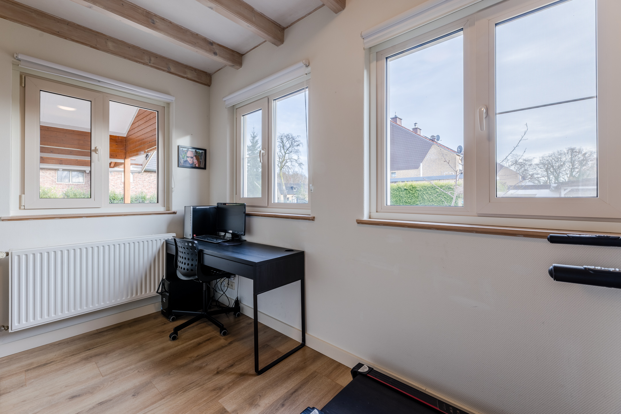 Op de begane grond bevindt zich tevens een kantoor of slaapkamer, ideaal voor werken aan huis of gelijkvloers wonen.