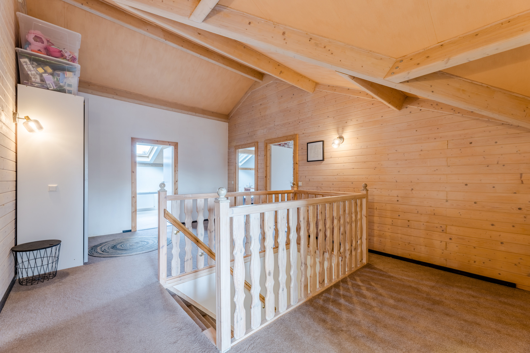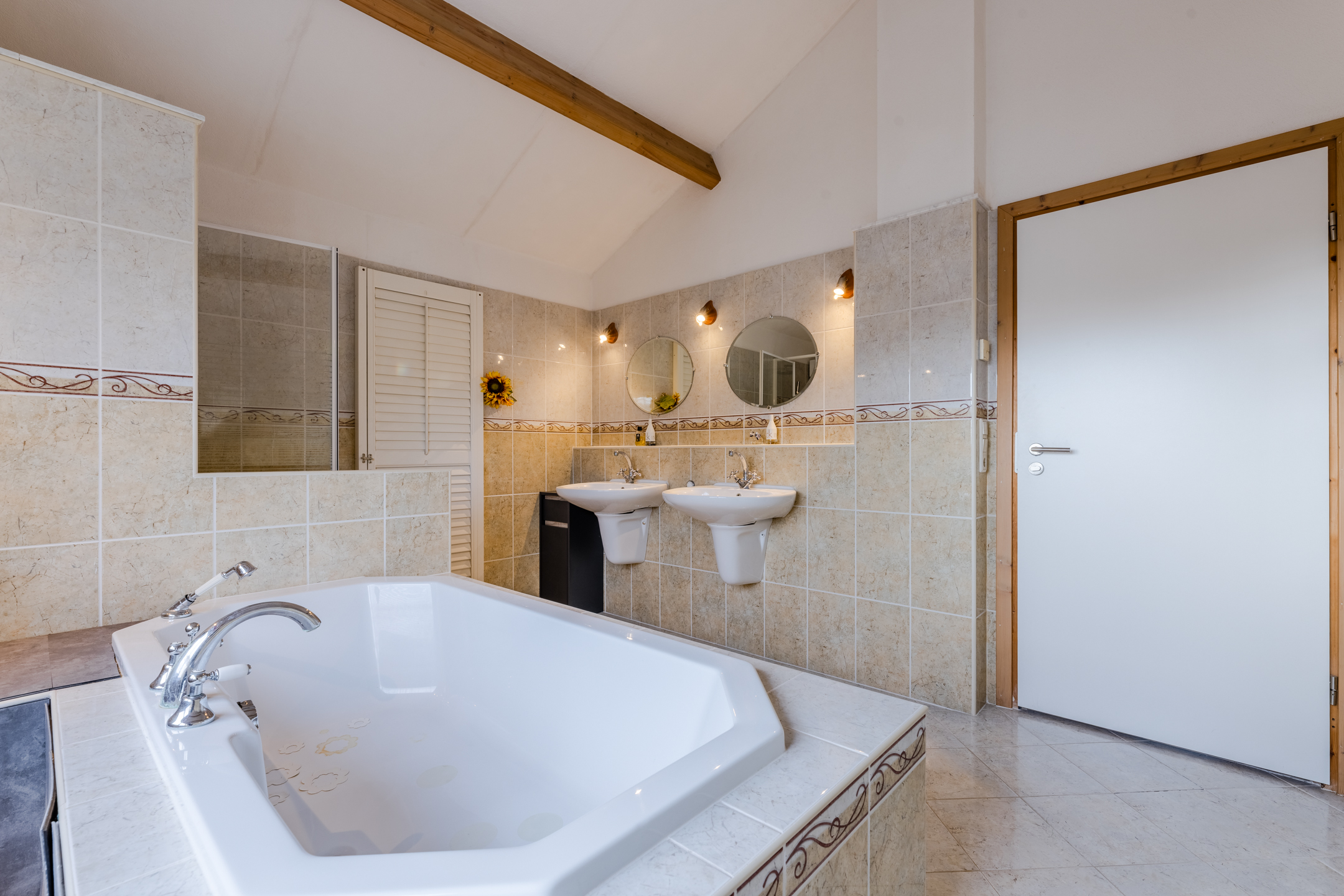 De verdieping beschikt over vier slaapkamers, waarvan twee zeer royaal van formaat. De complete badkamer is voorzien van een (lig)bad, dubbele wastafel, toilet, bidet en biedt de mogelijkheid tot het realiseren van een sauna.
